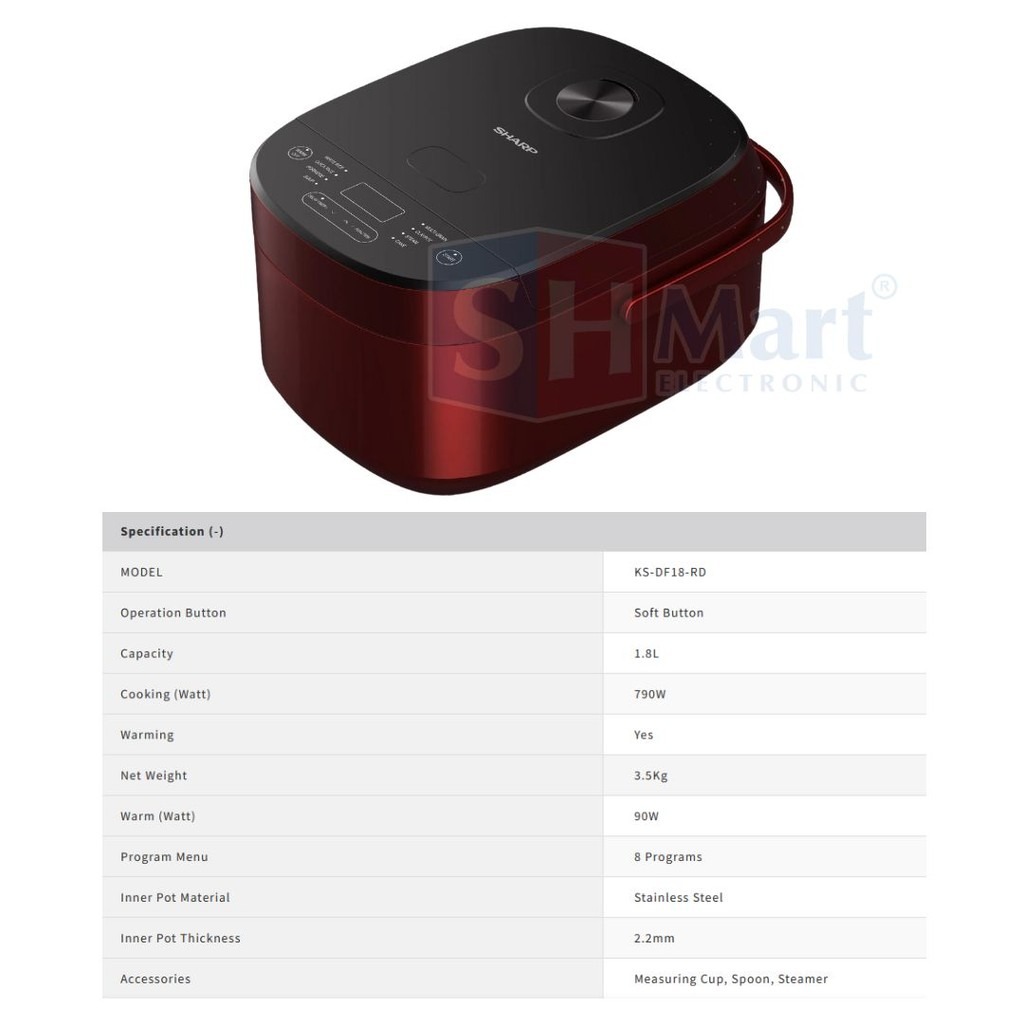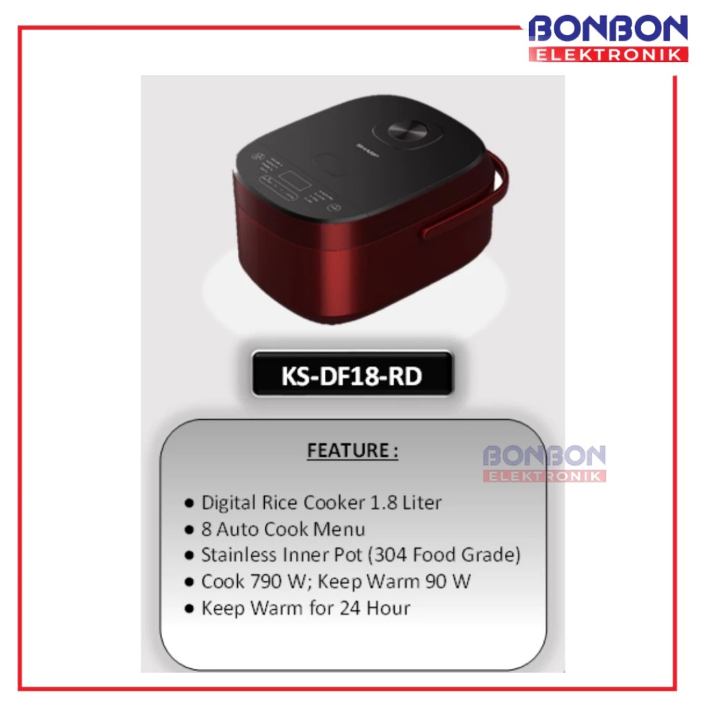 Rice Cooker Digital Sharp 1.8L KS DF18RD / KS-DF18-RD / KS-DF18 Red Magic Com - 8 Auto Cook Menu - 1.8 Liter [GARANSI]