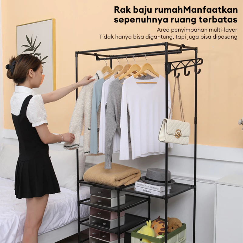 STAND HANGER PORTABLE GANTUNG BAJU PENYIMPANAN SERBAGUNA LEMARI PAKAIAN TANPA KAIN GAWANG BESI ANTI RAYAP BEST SELLER