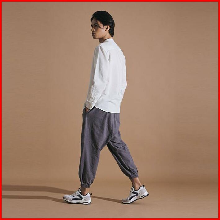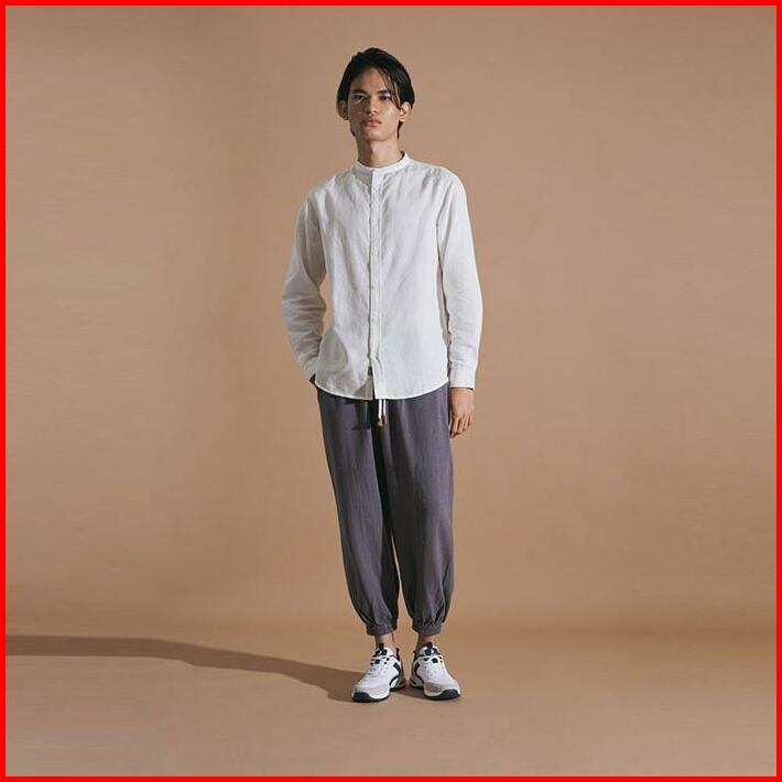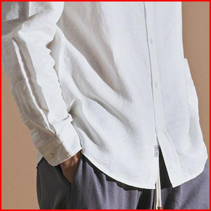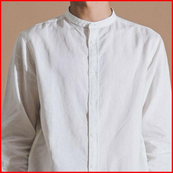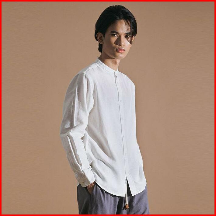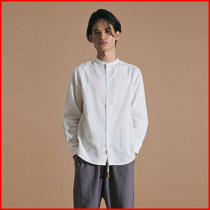 3second Basic Shirt Band Collar Cotton Linen White 170423 Formal Katun