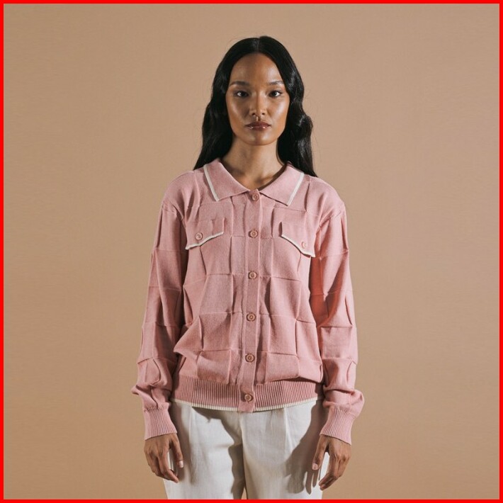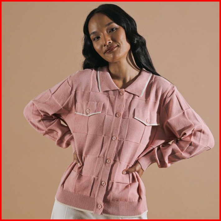 3second Jaket Knit Sweater Rajut Wanita Pink