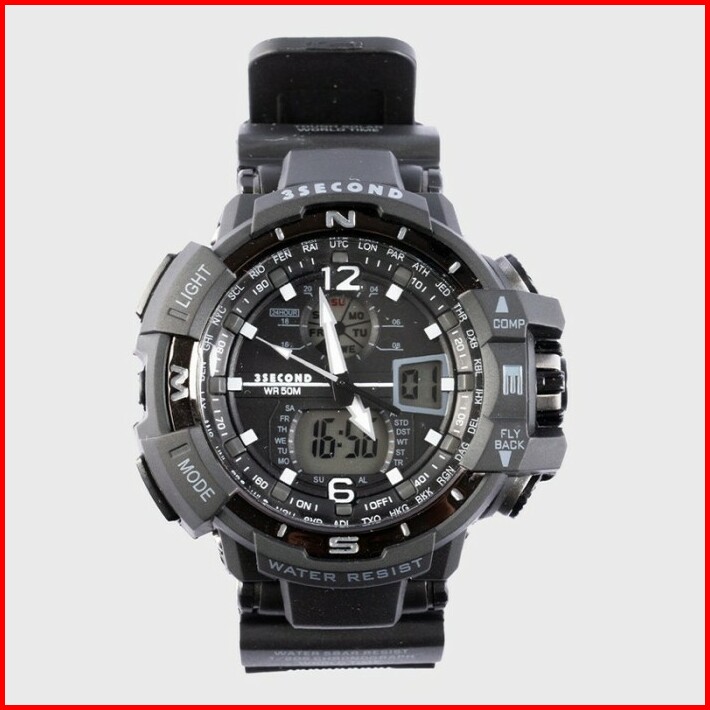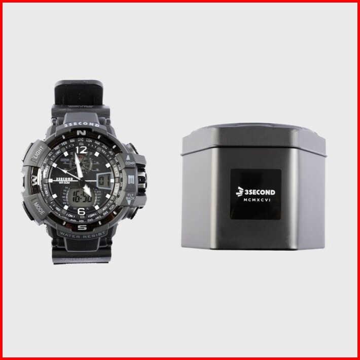 3second Jam Tangan Analog Digital Water Ressitant Sport Quartz Hitam