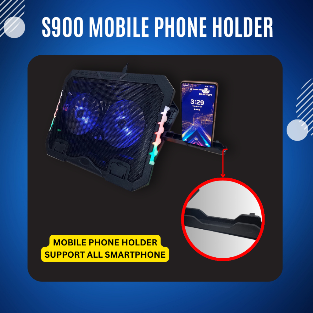 Quinton S900 kipas laptop gaming cooling pad 2 fan 14cm led RGB Running 3 in 1 untuk semua laptop