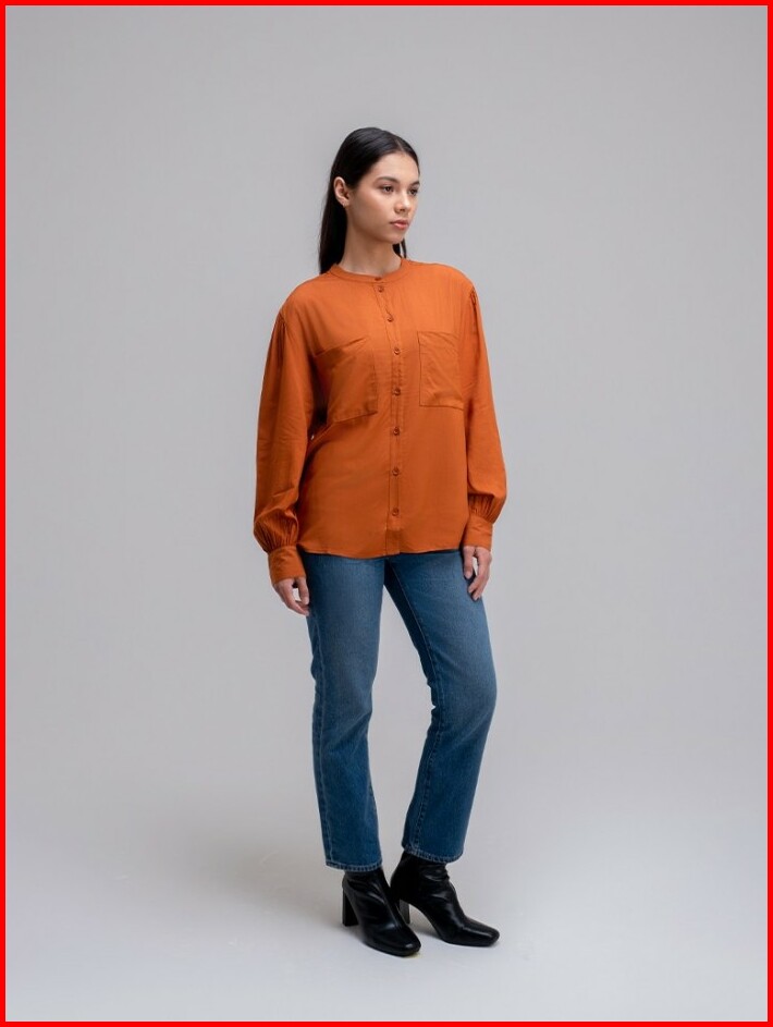 Greenlight Kemeja Blouse Rayon With Cuff Lengan Panjang Coklat
