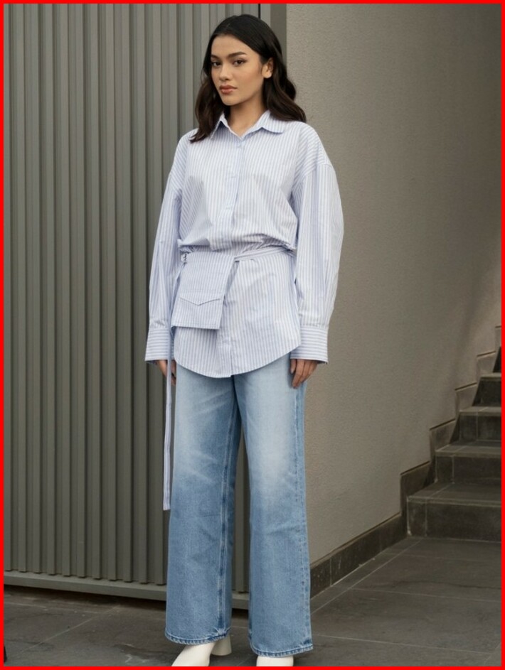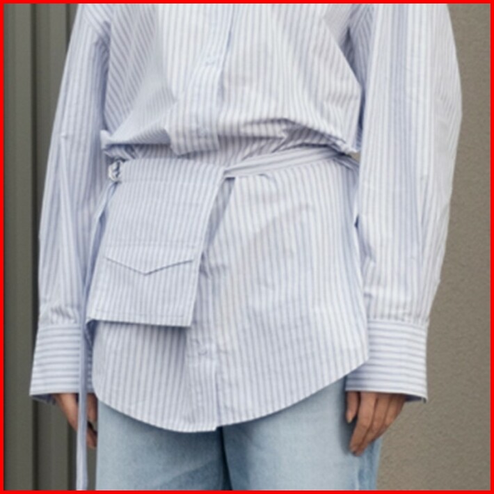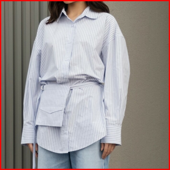 Greenlight Kemeja Lengan Panjang With Belt Bag Stripped Wanita Biru