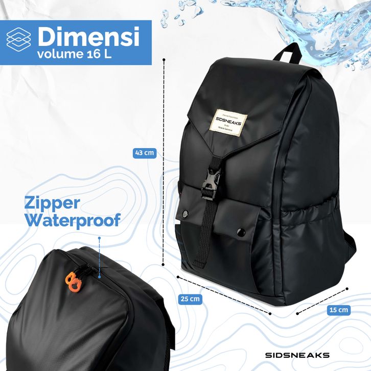 Tas Backpack Sekolah SIDSNEAKS - BacTas kpack Pria Waterproof Tas Ransel Anti Air Tas Sekolah Kuliah Kerja - Rover Black