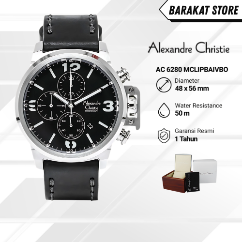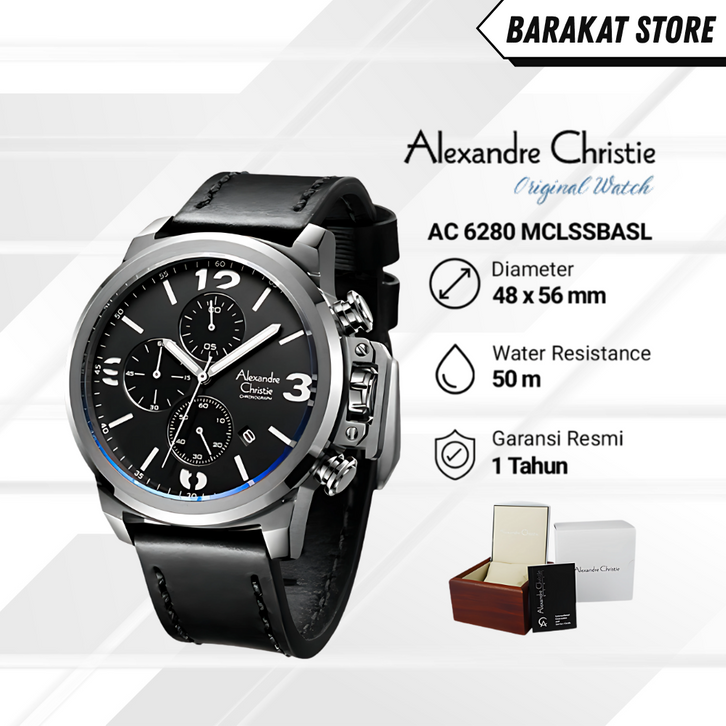[Mall] Jam Tangan Pria Alexandre Christie Ac 6280 Mc Lssbasl Chronograph Stylish Dengan Strap Kulit & Dial Hitam"