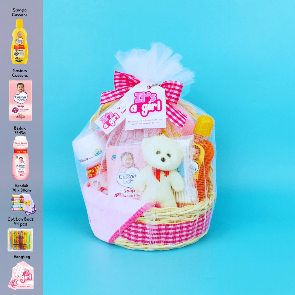 Hampers Bayi Rotan Cussons Kado Lahiran Laki Perempuan Gift Set Unik Handuk Shampoo Sabun Sampo Bedak Tabur Cotton Bud M