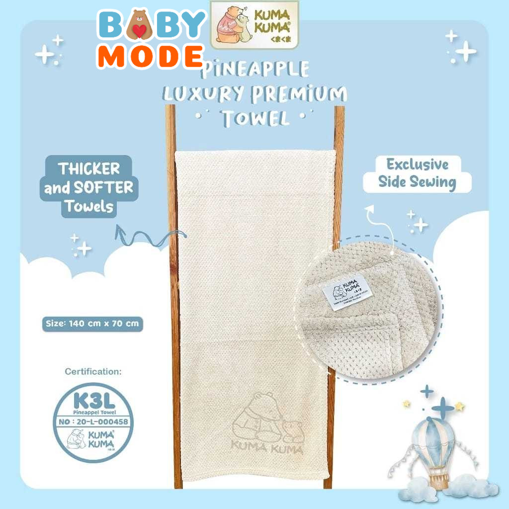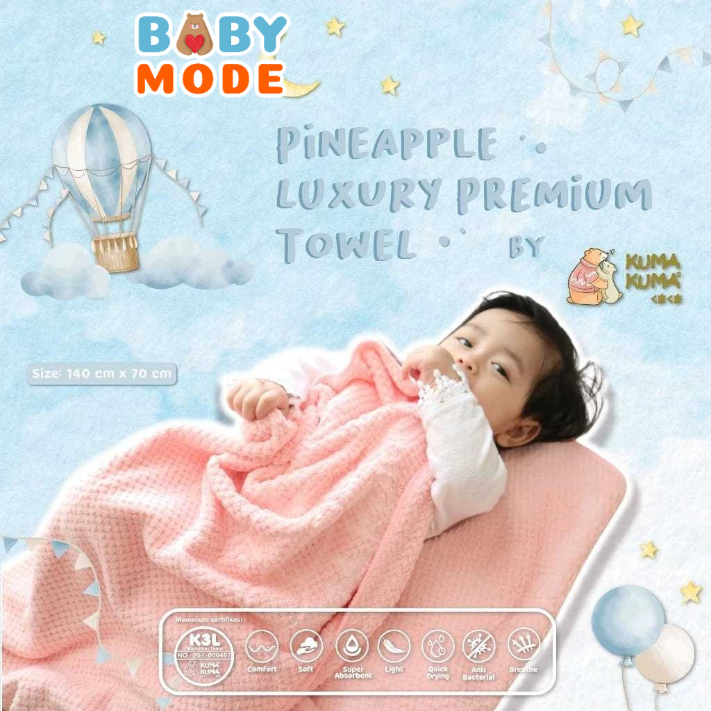 KUMA KUMA Pineapple Luxury Towel 140 x 70cm | Handuk Towel Mandi Anak Bayi Newborn Premium Super Lembut Kuma Kuma Pineap