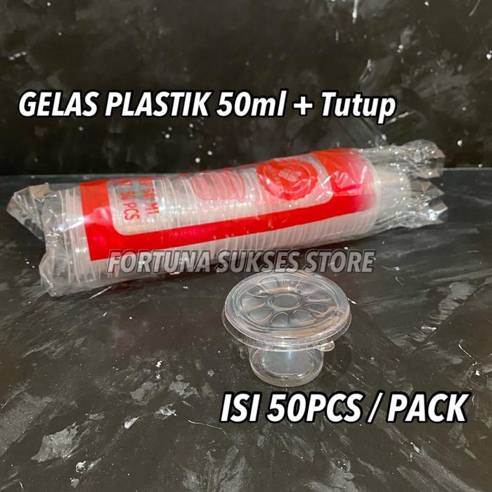 Gelas Plastik 50ml isi 50pcs / Gelas Plastik 50ml + Tutup isi 50set - Cup Pudding 50ml - Gelas Agar Agar - Gelas 50ml