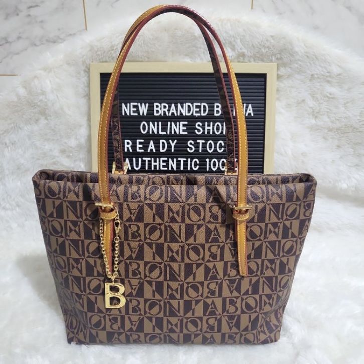 Tas Bonia Original Tote Bag Monogram Coklat M