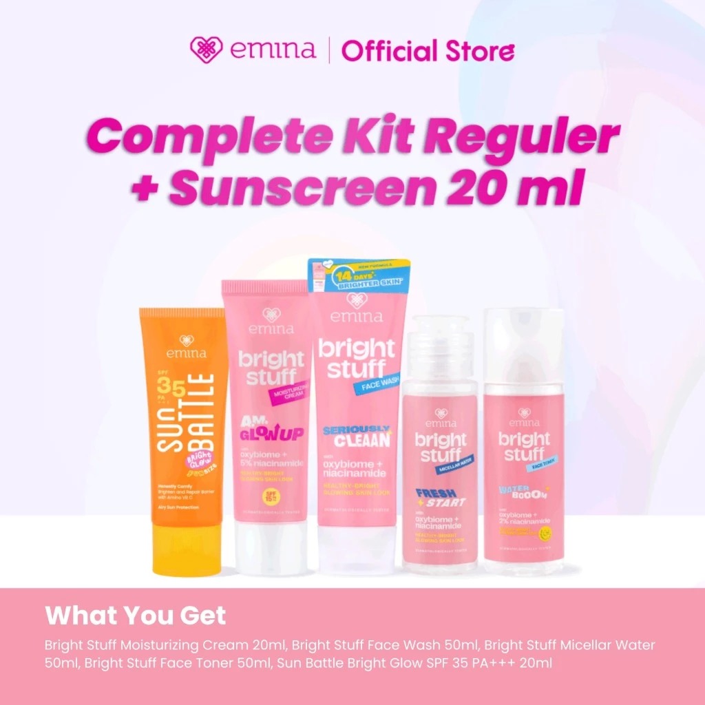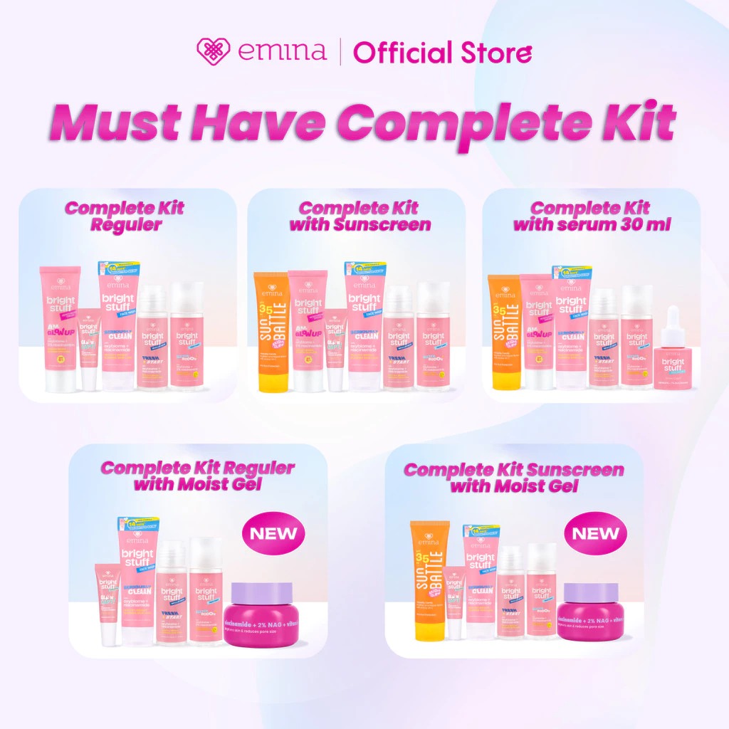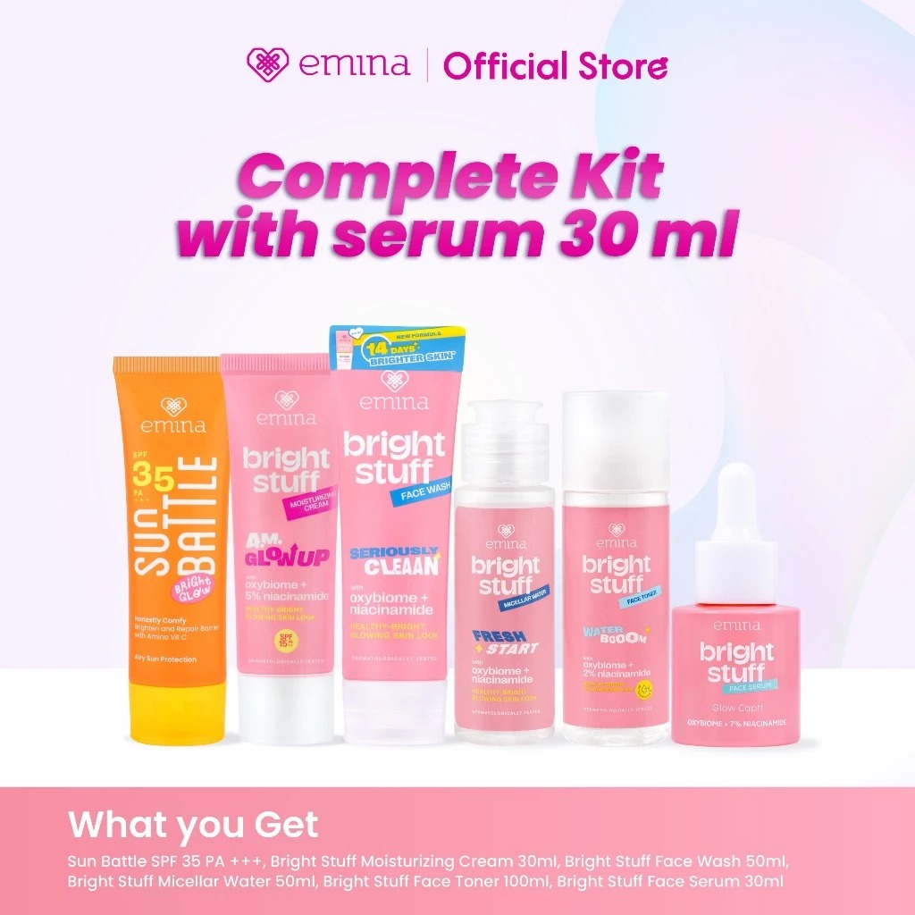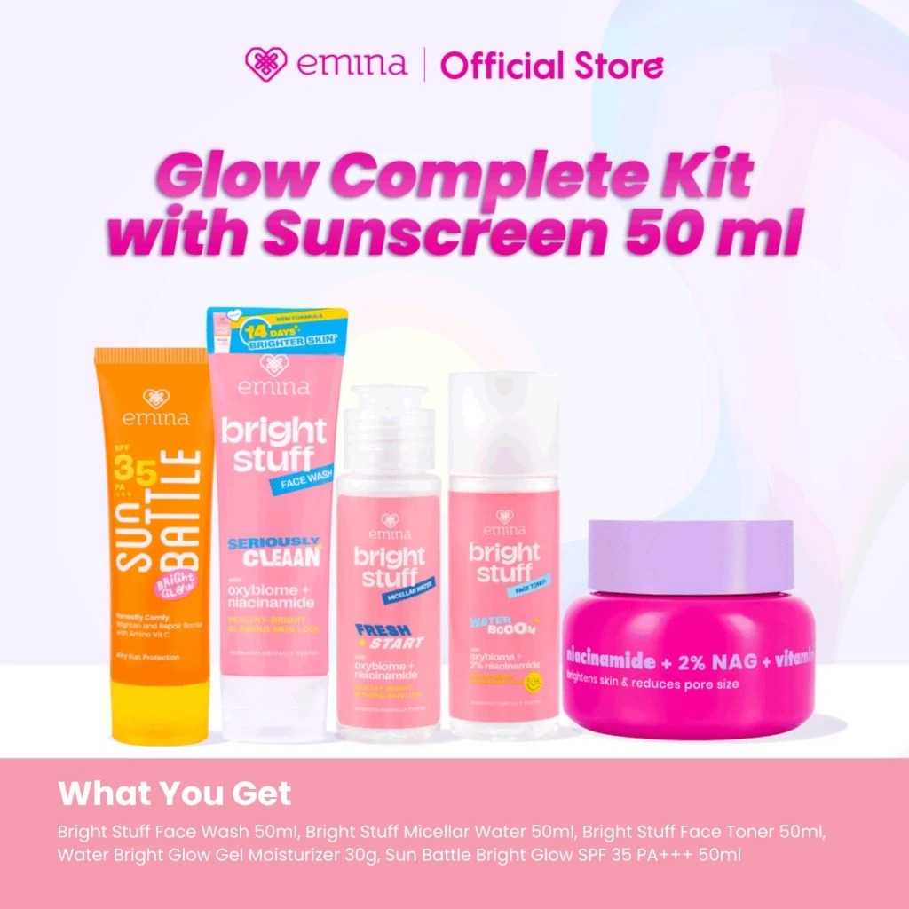 emina official store [MUST HAVE] GLOW COMPLETE KIT LEBARAN EMINA BRIGHT STUFF ISI 5 (Micellar Water, Face Wash, Toner, S