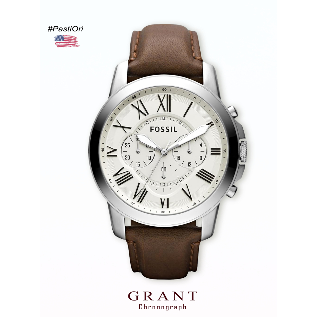 [Mall] Jam Tangan Pria Fossil Fs-4735 P Grantsentuhan Klasik Dalam Dial Beige & Leather Strap Eksklusif Original