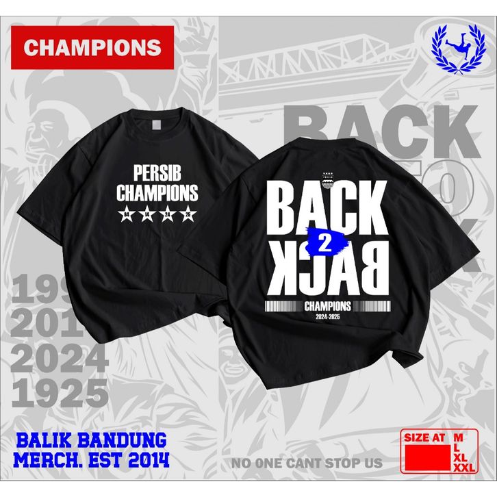 Kaos Persib Back2Back Juara 2024–2025 | Bahan 30s | T-Shirt Resmi Bobotoh M–XXL Kaos Persib kaos Pria Kaos Oversize Kaos