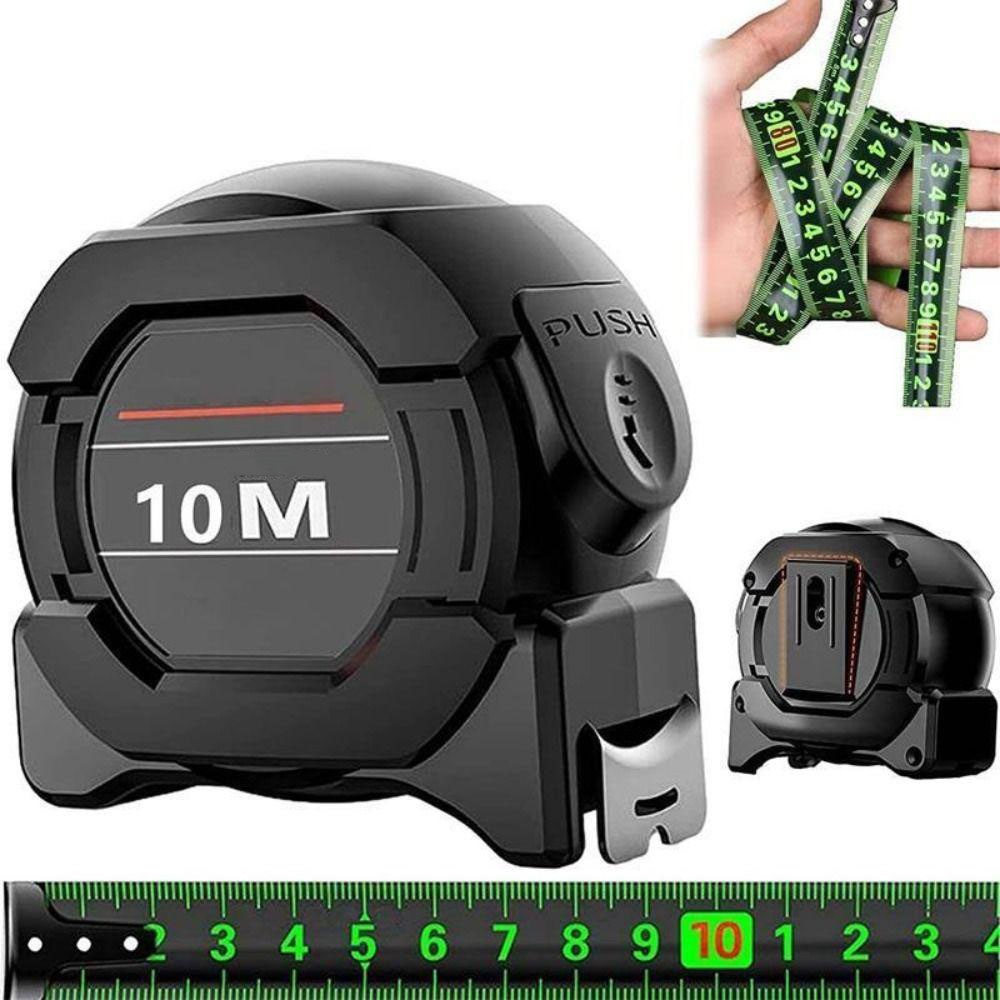 Penggaris Neon Berteknologi Hitam Dengan Pita Pengukur Impor 10 Meter/Pita Pengukur Stainless Steel Tahan Air Anti Karat