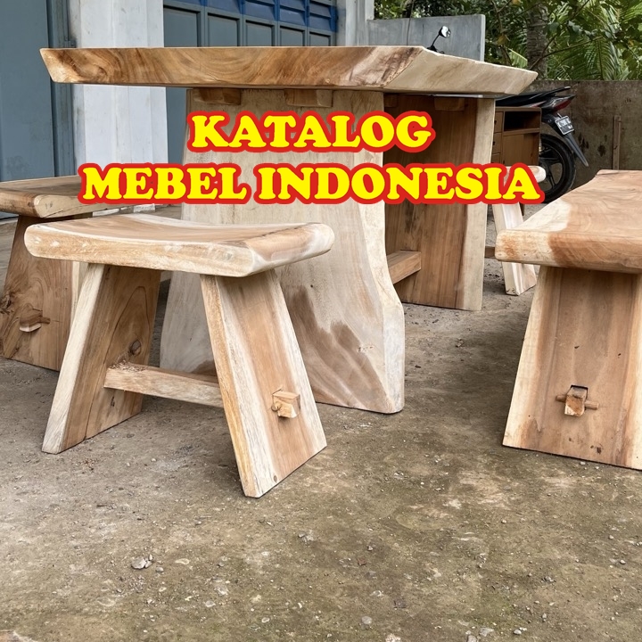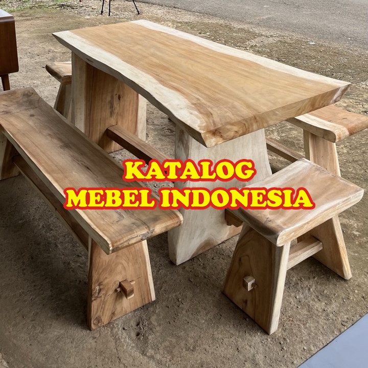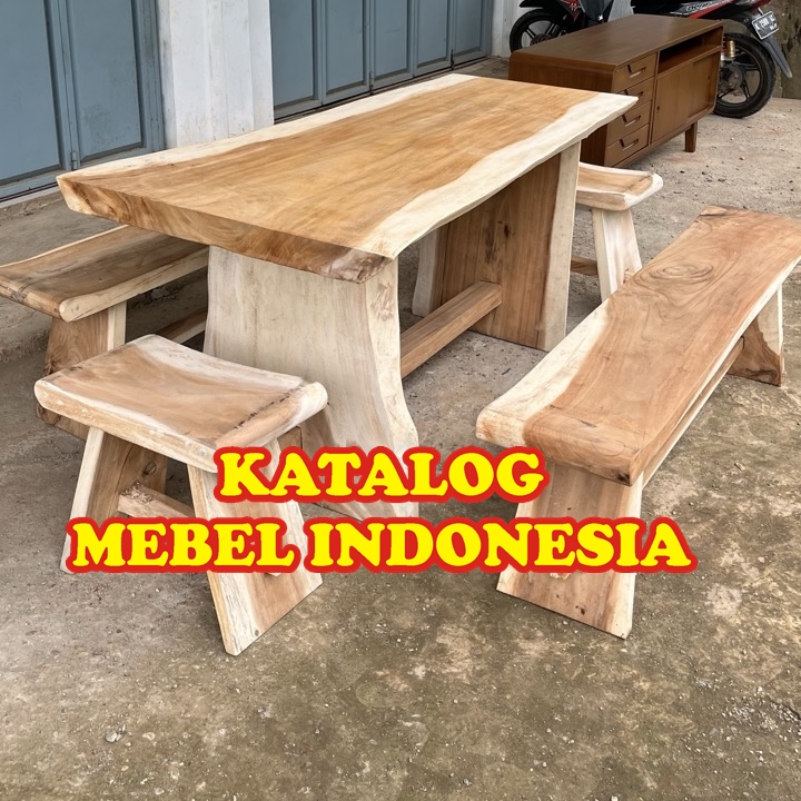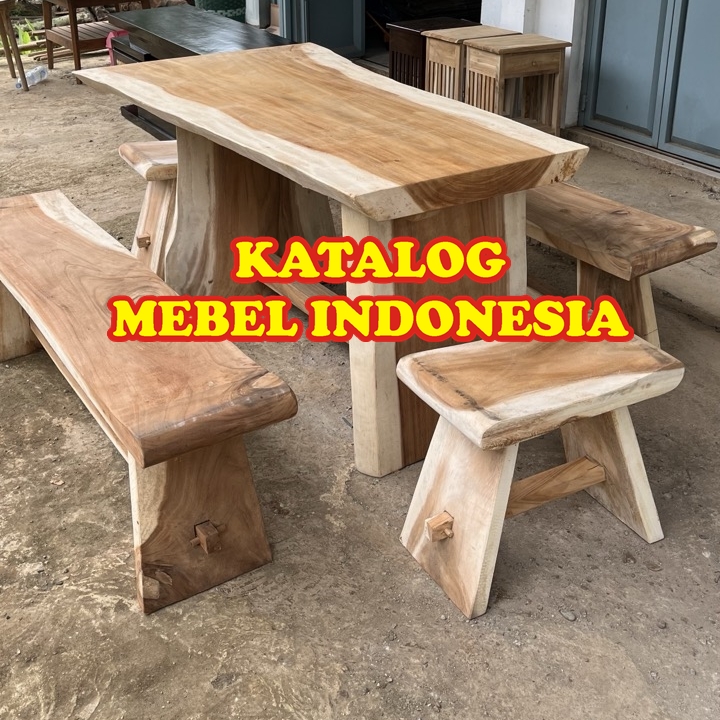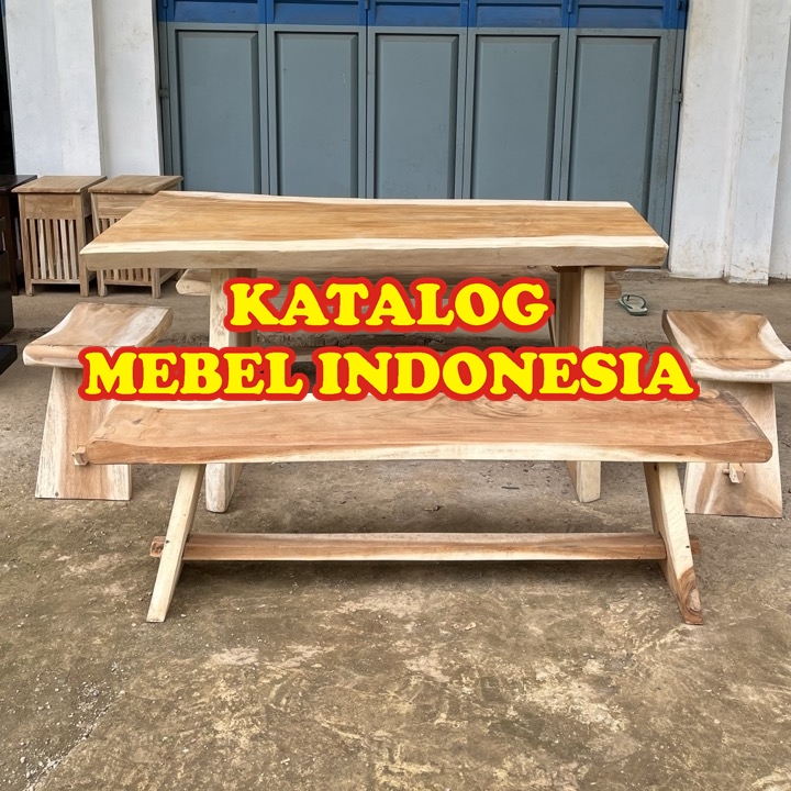 Meja Makan Trembesi Utuh Tanpa Sambungan + Kursi - Furniture