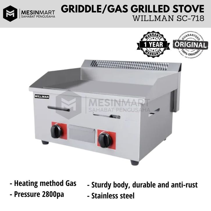 Gas Griddle Full Flat Grilled Stove Mesin Alat Pemanggang Panggang Makanan Teppanyaki Steak Serbaguna WILLMAN SC-718