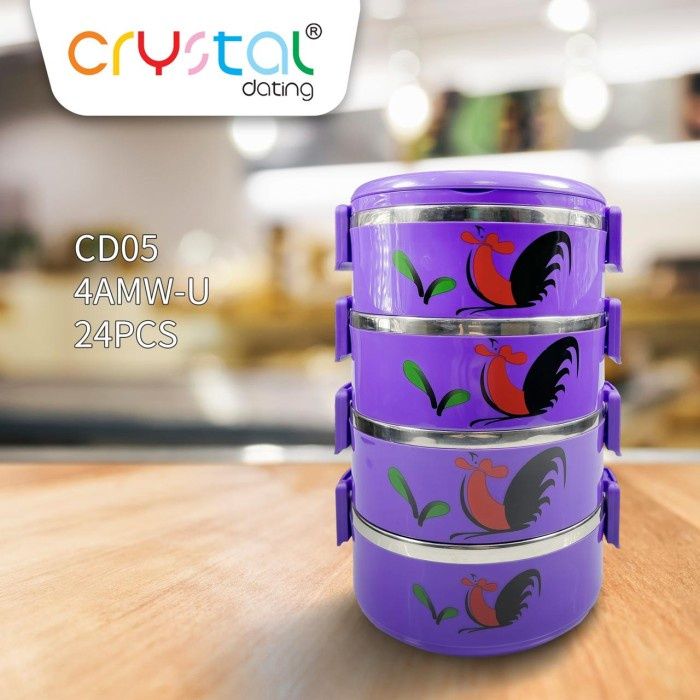 Rantang Makan 4 Susun Stainless Motif Ayam Jago / Lunch Box Set Stainless Motif Ayam Jago / CD05-4AM