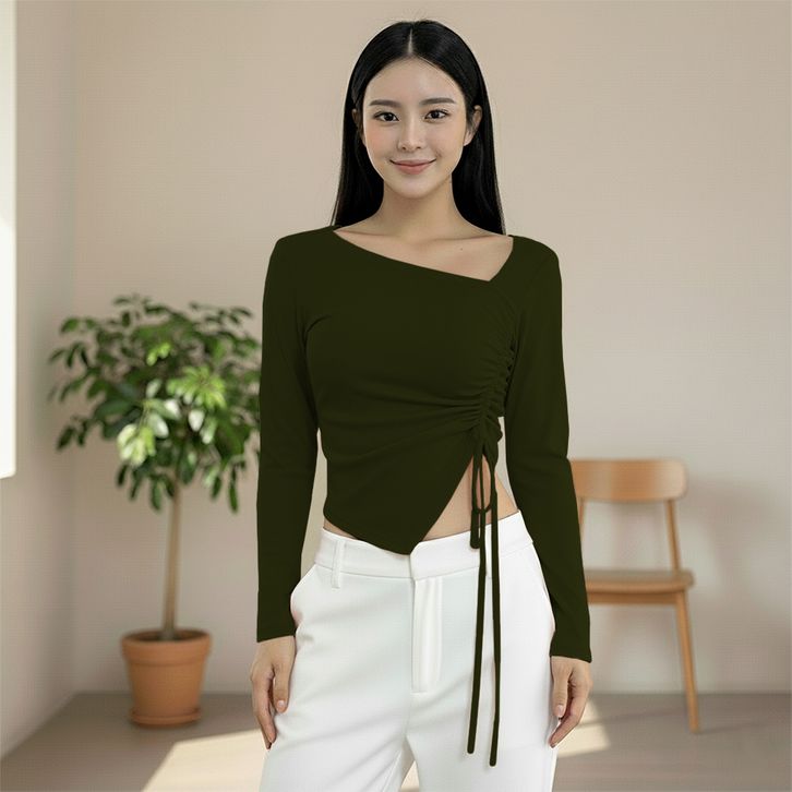 tasan Crop Top Wanita Square Neck Korean Style 6057