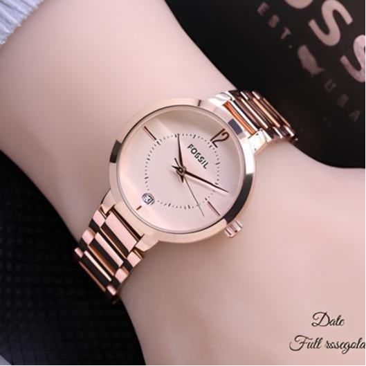 Jam Tangan Wanita Fossil F811 Sentuhan Berkelas Dengan Rantai Belimbing & Tanggal Aktif Free Box 100% Original