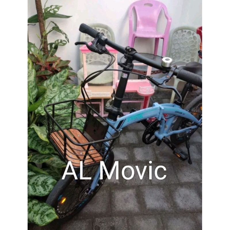 Keranjang sepeda lipat alas kayu kranjang front blok