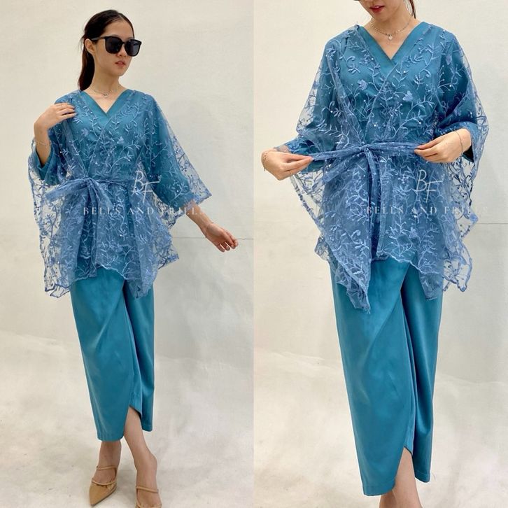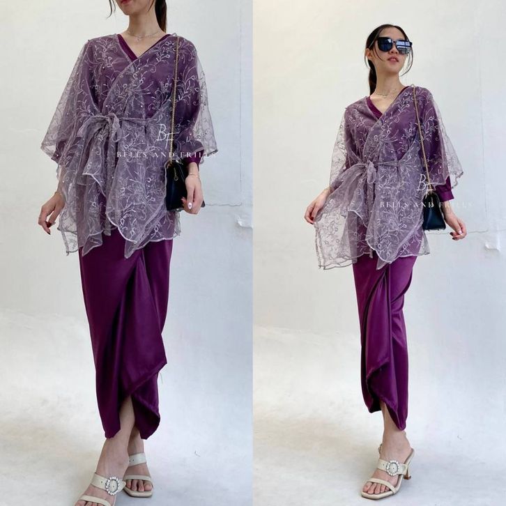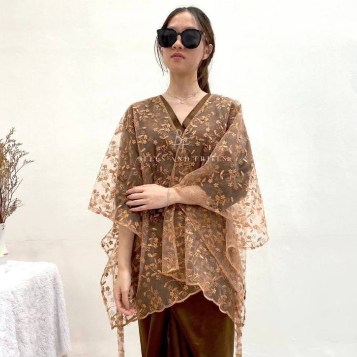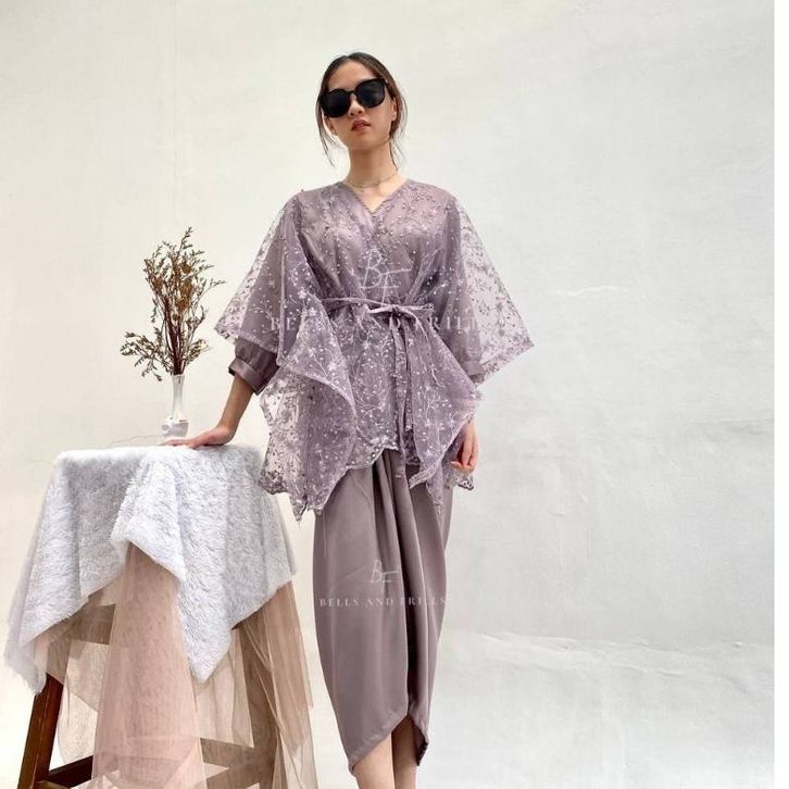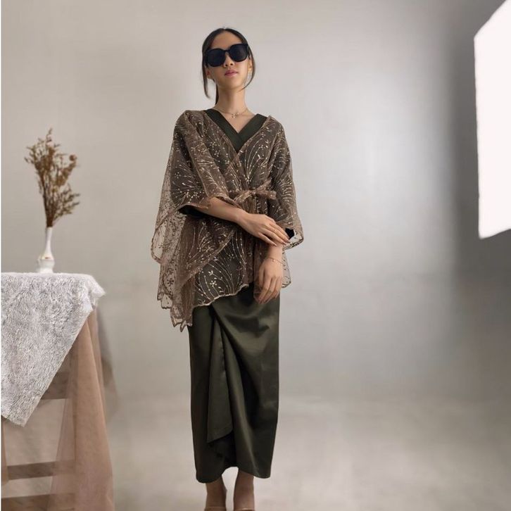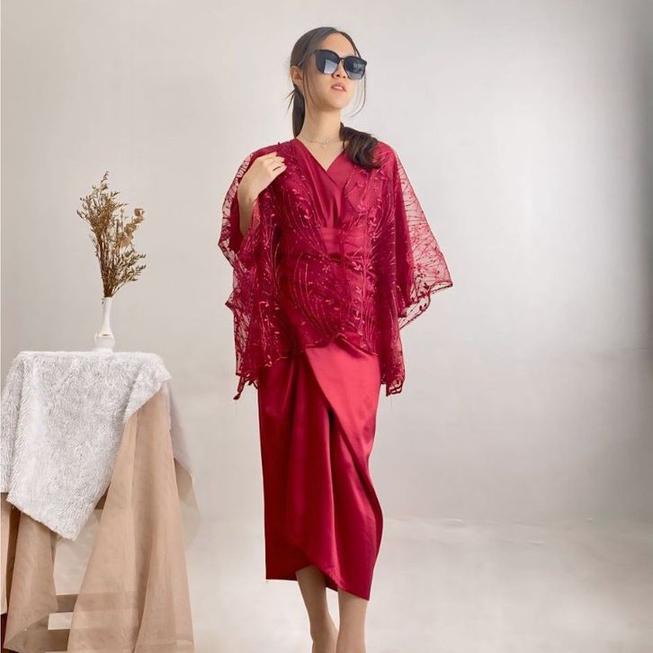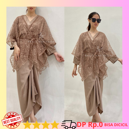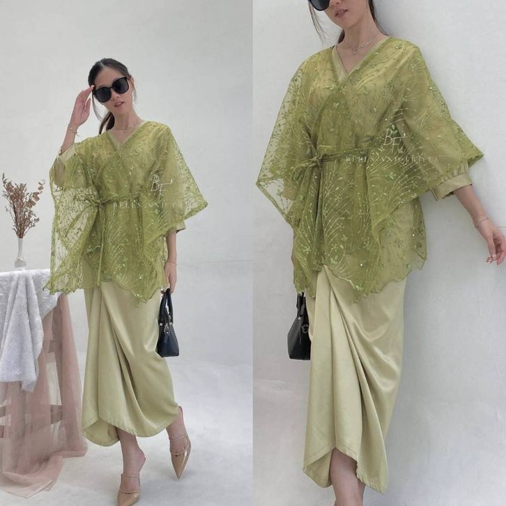 One Set Wanita Kondangan Outer Brokat Paket 4in1 Bundle Naura Zela One Set Rok Lilit Satin Kimono Blouse Skirt Kondangan