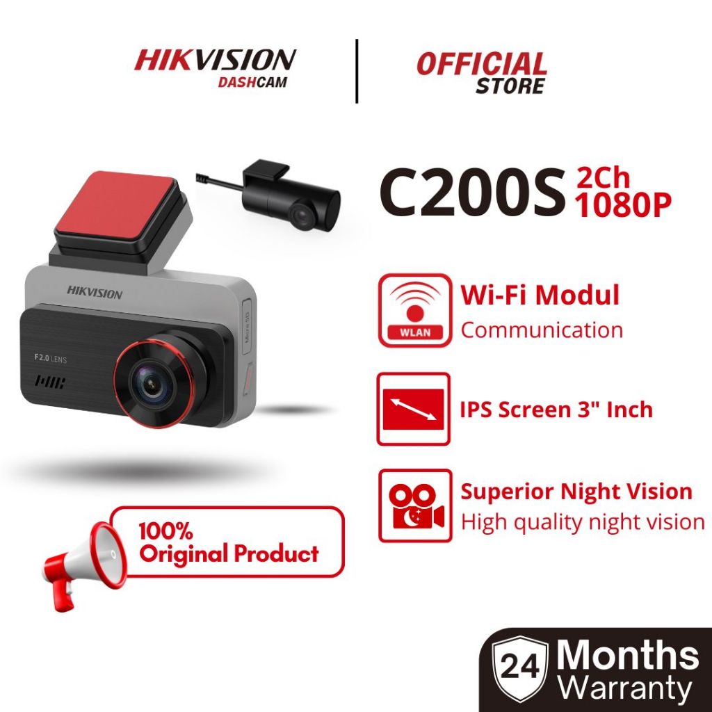 [Star] Dashcam Mobil HIKVISION C200S Dash Cam 1080P WiFi Front+Rear Dual Channel Original
