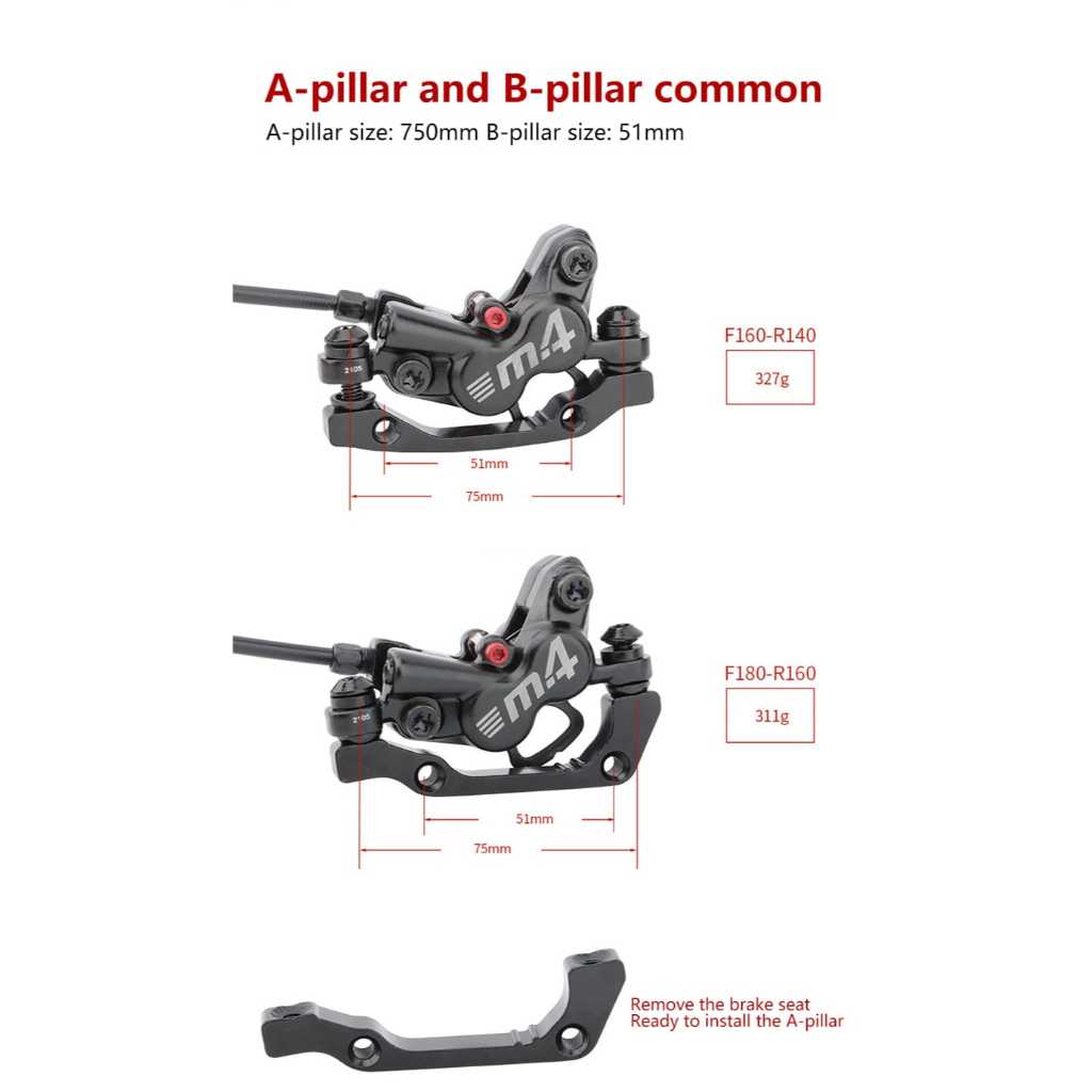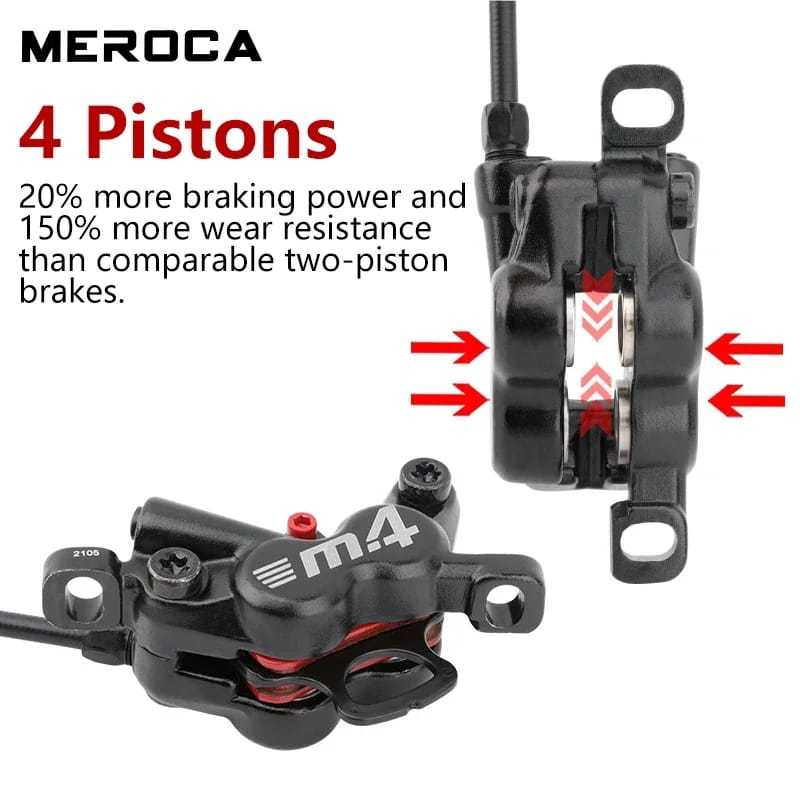 Meroca MT4 Brakeset 4 Piston Brake Set Hydraulic 4 Piston Rem Cakram Sepeda Hidrolis 4 piston