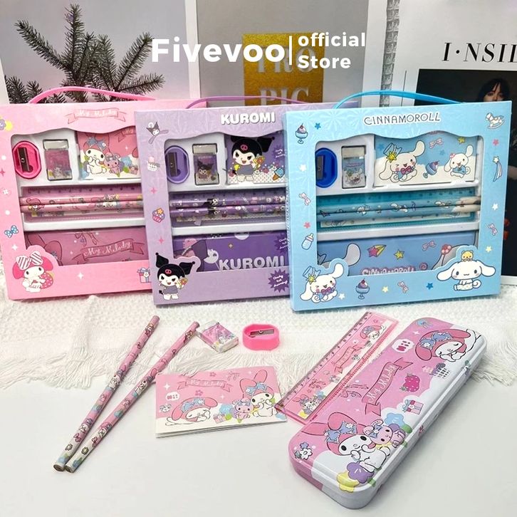 FIVEVOO Alat Tulis Anak Tk / Kotak PenFIVEVsil Anak Set / Tempat Pensil Anak Perempuan Sanrio / Kotak Pensil Kuromi Squi