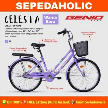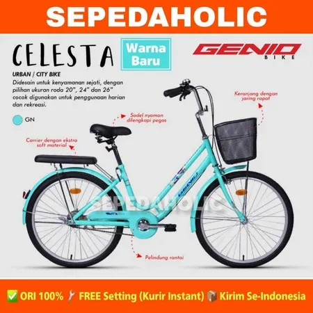 SEPEDA ANAK PEREMPUAN KERANJANG DEWASA REMAJA GENIO CELESTA UKURAN 20 24 26 INCH PROMO TERBATAS