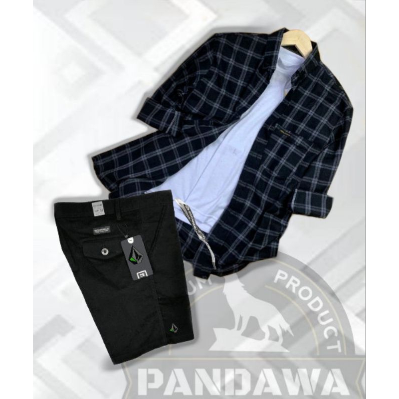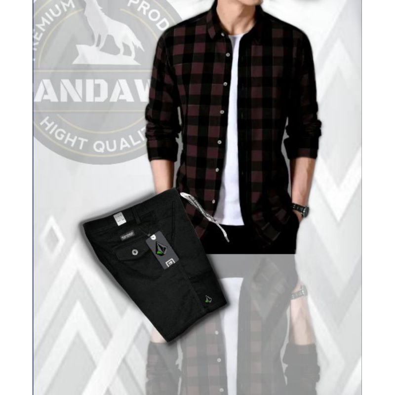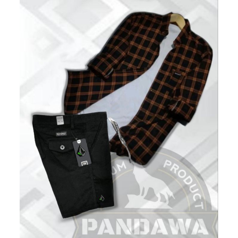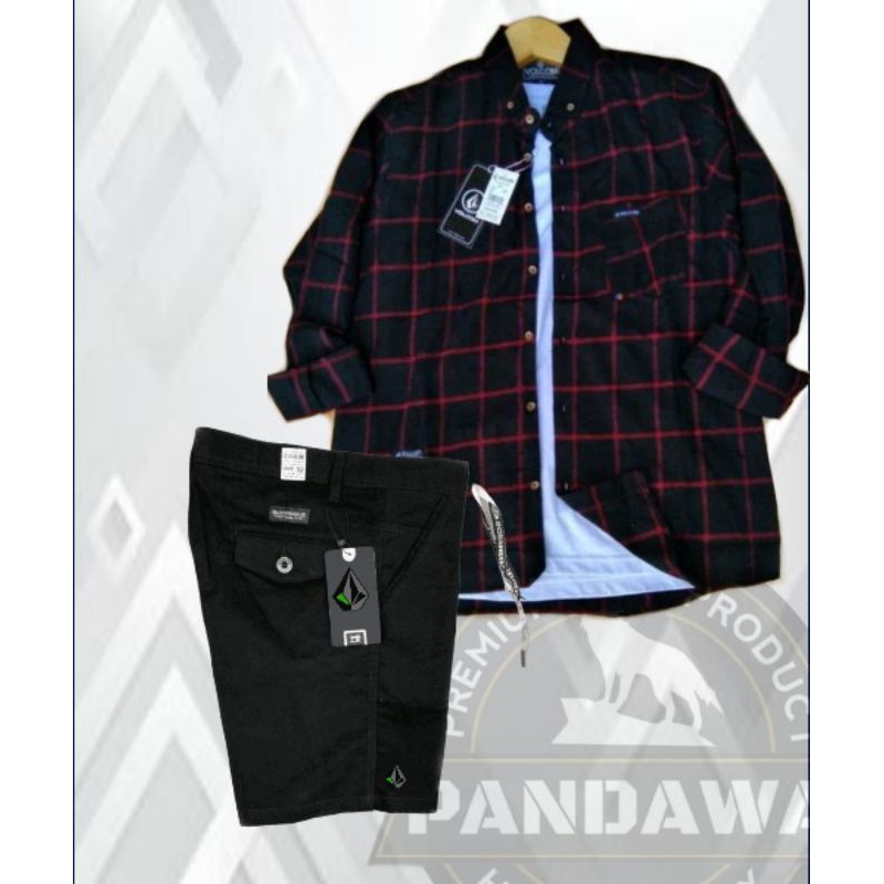 ONE SET STELAN PRIA TERBARU KOTAK KOTAK KEMEJA FLANEL LENGAN PANJANG CELANA PENDEK PRIA DEWASA DISTRO
