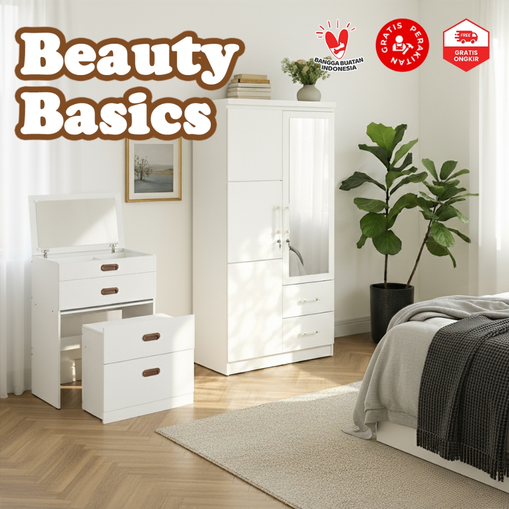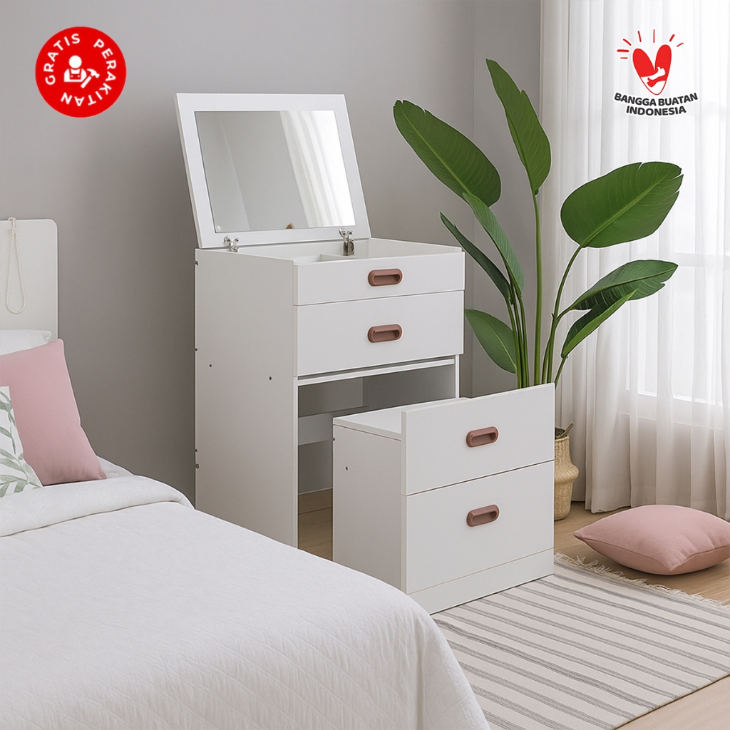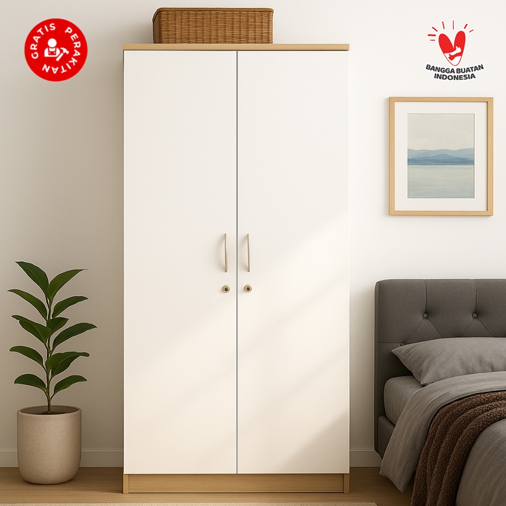 Casaloma Furniture Lemari Pakaian 2 Pintu Minimalis Paket Meja Rias Elegan Moderen