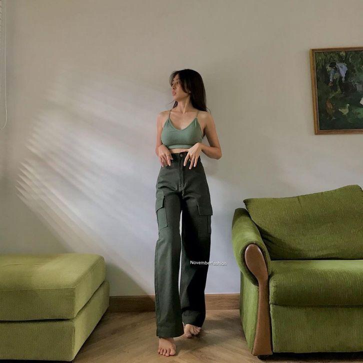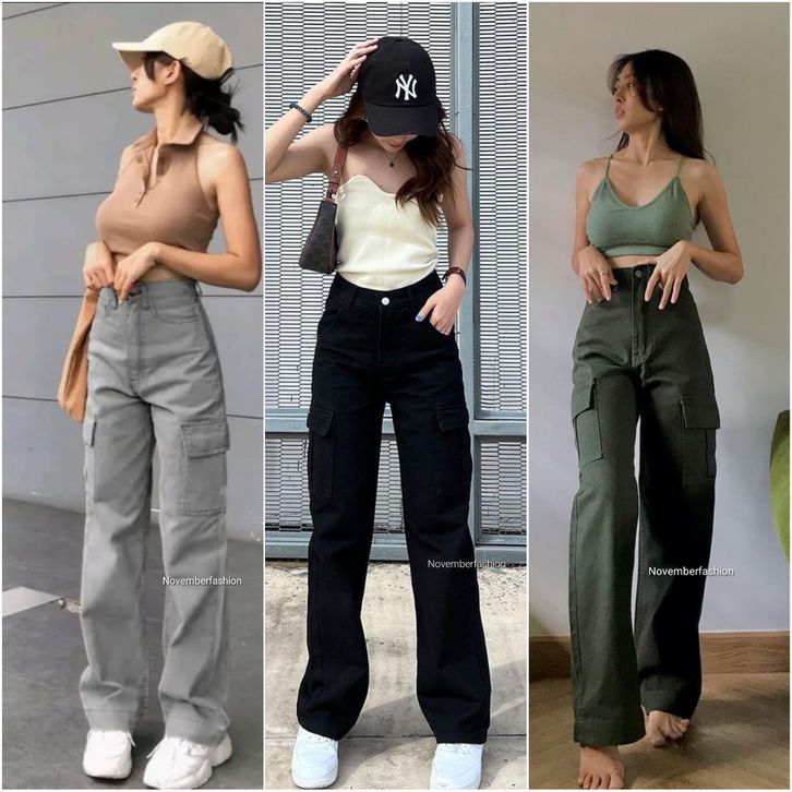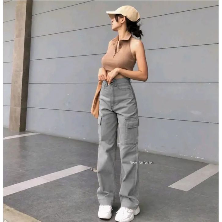 Celana Cargo QYUJINS -9rEY HW LOOSE CARGO JEANS / ABU ABU CARGO JEANS / CELANA BIGSIZE HW LOOSE JEANS WANITA