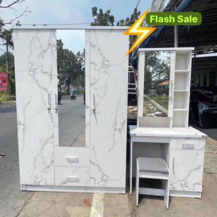 1 paket lemari 3 pintu dan meja rias / kab. tangerang cilegon dan Serang