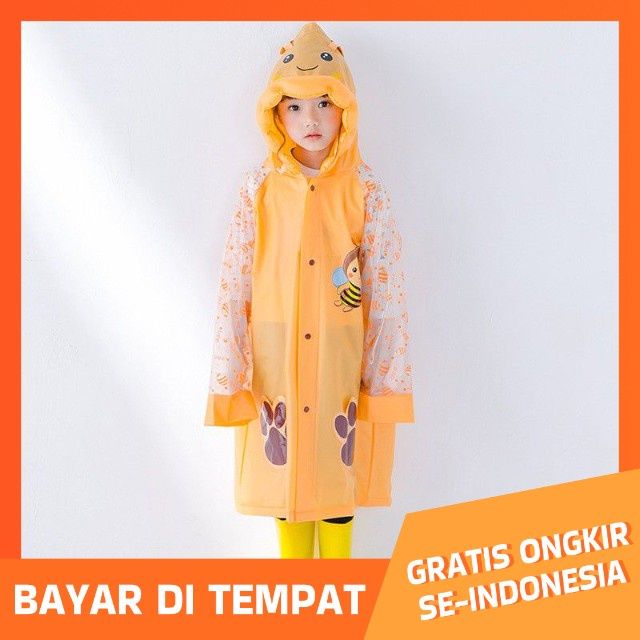 Jas Hujan Anak - Raincoat Mantel Hujan Terusan Anak Motif Karakter Lucu dengan Tas Belakang