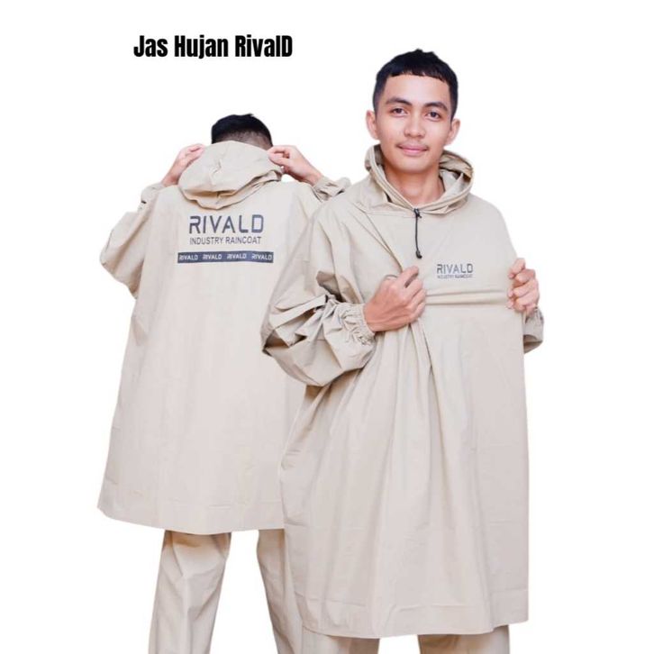 JAS HUJAN SETELAN PONCO + CELANA JUMBO PRIA WANITA PVC 0,25 CREAM TERBAIK BY RIVALD