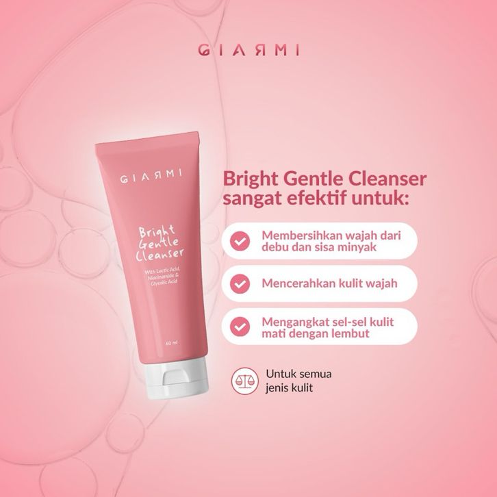 Giarmi Bright Gentle cleanser 60ml, sabun cuci wajah glowing, facial wash glowing, Facial wash brightening
