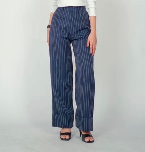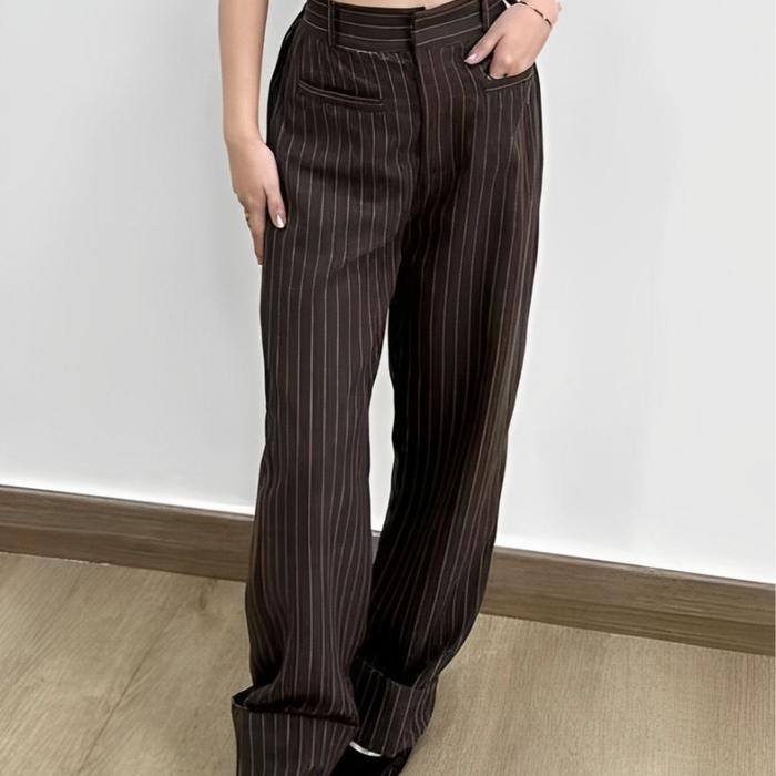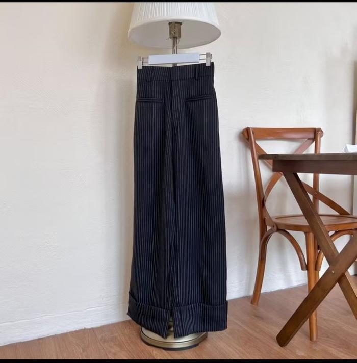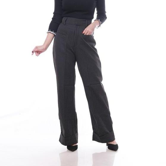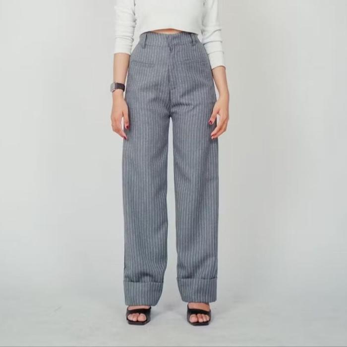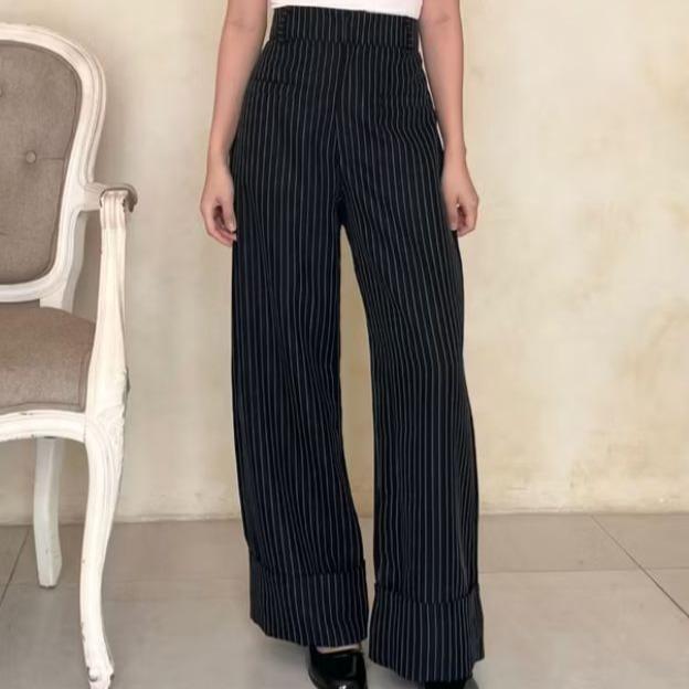 BEOM PANTS-LOOSE PANTS STRIPE TROUSER WANITA - HITAM STRIPE, S