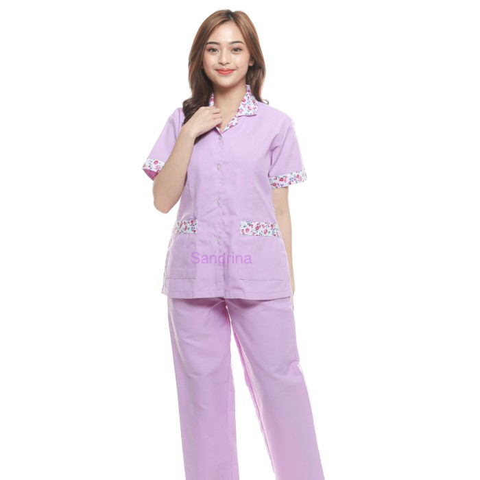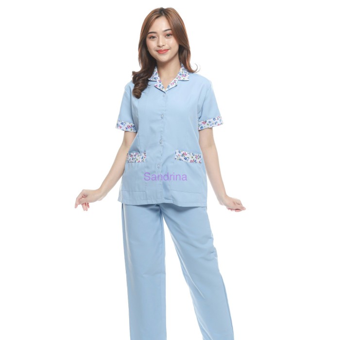 BAJU SERAGAM SUSTER (CLN PNJNG)/ BAJU BABY SITTER/ NANNY (MOTIF BUNGA) - S, BIRU