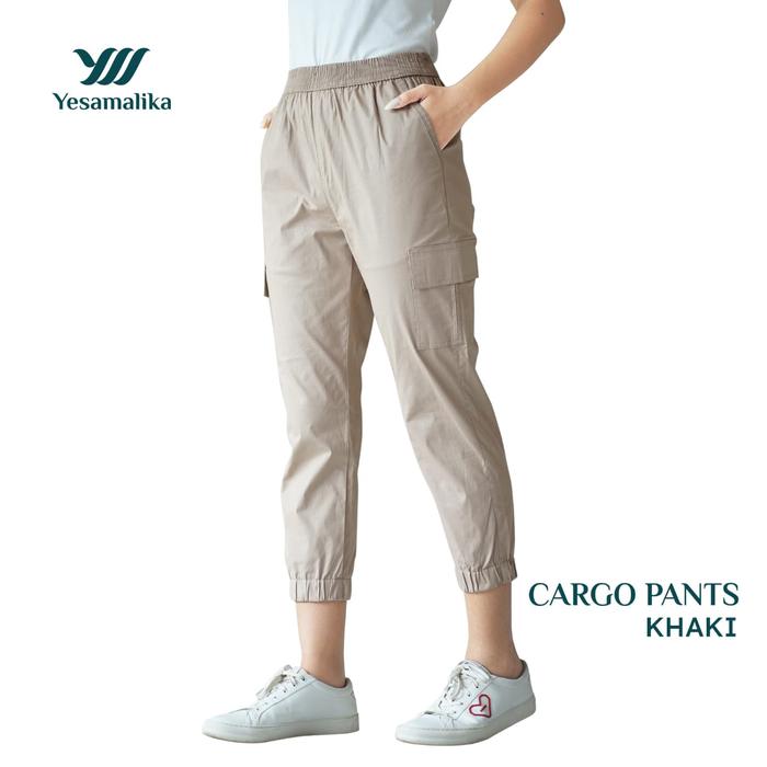 YESAMALIKA CARGO PANTS CELANA WANITA 7/8 | CELANA HARIAN SANTAI FORMAL CASUAL | BAHAN KATUN STRETCH MELAR UNTUK BB REGULER SAMPAI SUPER JUMBO DAN BANYAK PILIHAN WARNA - BLACK, S TO L (REGULER)