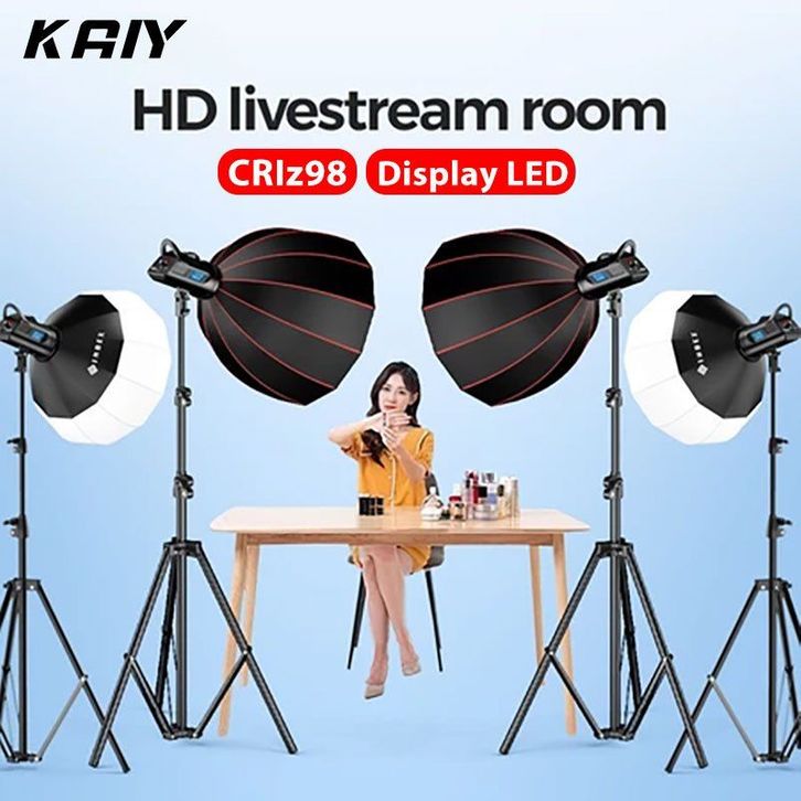 KAIY LED/COB Softbox Lighting With Grid Photography Livestreaming Lampu Packet with Video Light +1.6M/2.1M/2.8M TriPo'd