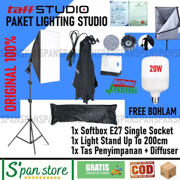 Paket Lighting Studio Foto Softbox E27 Light stand Gratis Bohlam 20W