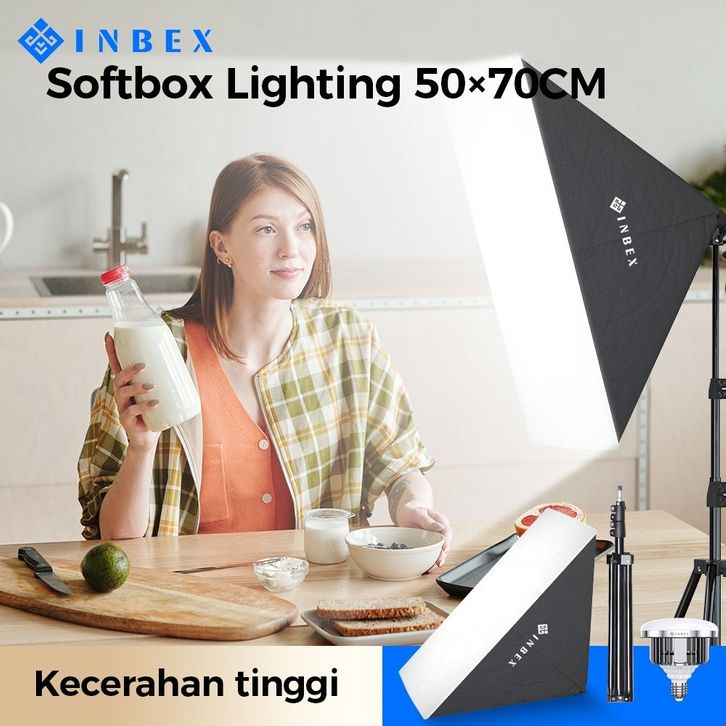 INBEX Lighting Studio Softbox Lighting Paket Studio Foto Light Stand 2M + Softbox/untuk Live Streaming Studio Lighting
