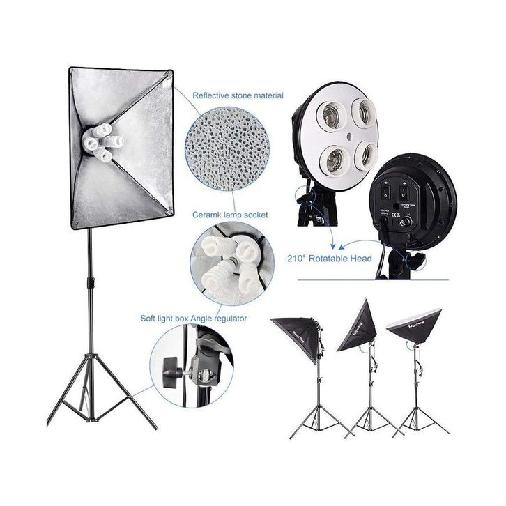Paket 2 SET Lampu Studio Video Softbox Foto Studio 4 Socket E27 + Light Stand Reflektor