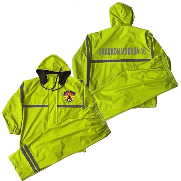 Raincoat / Jas Hujan Setelan Celana TNI AU - SKADRON UDARA M0Del Jaket Full Seam Sealling Anti Rembes - Custom Nama Dan