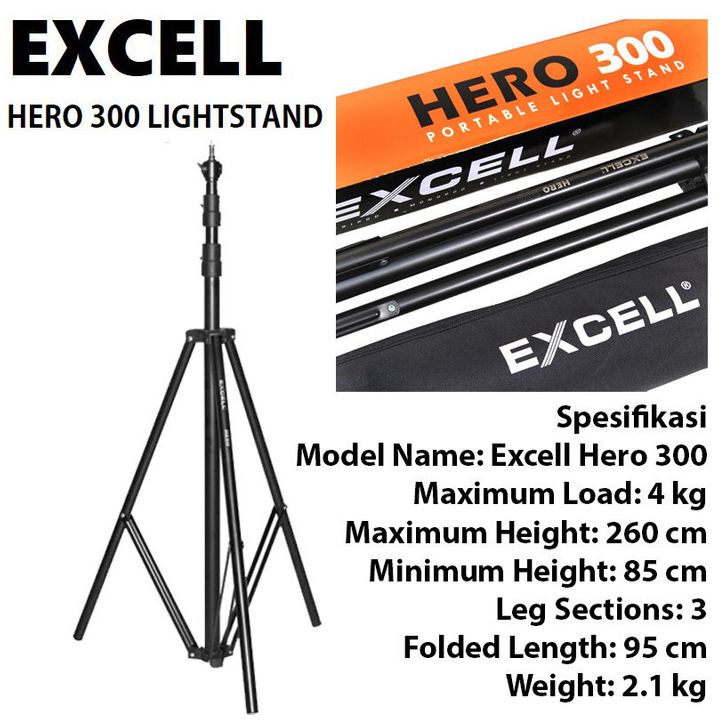 Excell Hero 300 Light Stand Lampu Studio TriPo'd Lightstand Godox SL60W