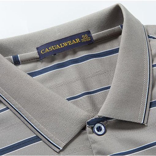 Men's Short Sleeve Striped Turn-down Collar Casual Shirt for Young and Middle-aged Men POLO Shirt