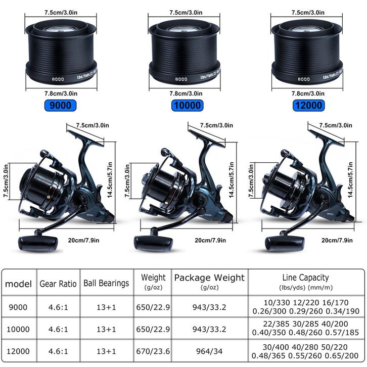 Sougayilang 9000-12000 Series Dual Purpose Fishing Reel 13+1BB Carp Fishing Reel 4.6:1 Gear Ratio Surf Fishing Reel Tro