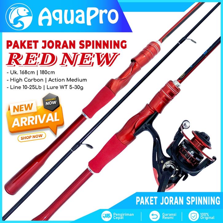 Aquapro 1 Set Paket Alat Pancing Joran Spinning Fishing Rod Merah High Carbon & Reel Pancing DM1000