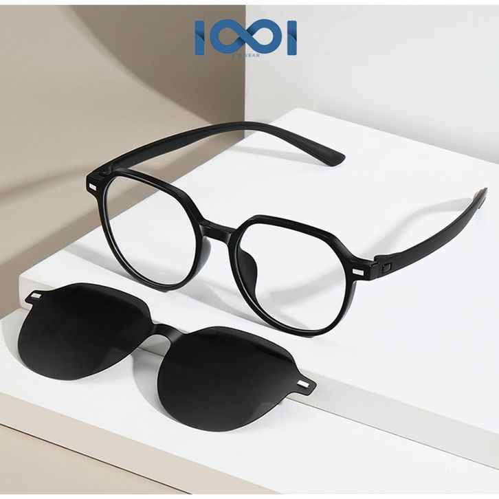 IOOI Eyewear - Kacamata Oval Hitam Clip On Sunglasses UV Protection Trend Bisa Minus Pria Wanita 9006