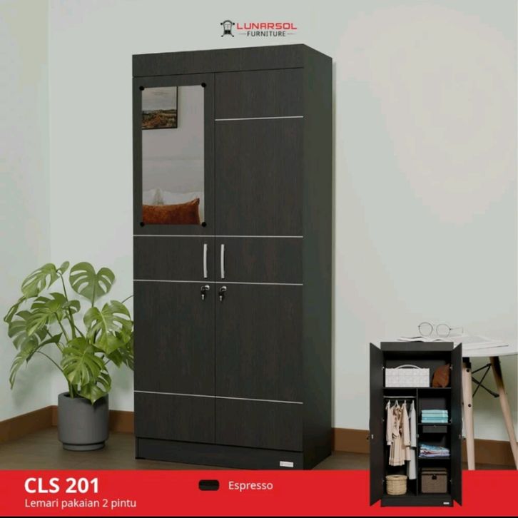 Lunarsol Lemari Pakaian Baju 2 Pintu kaca Minimalis